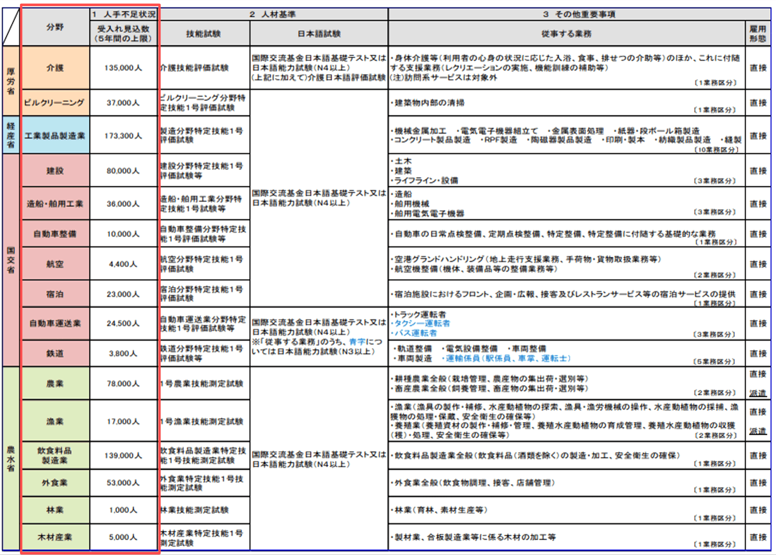 特定技能分野・見込数